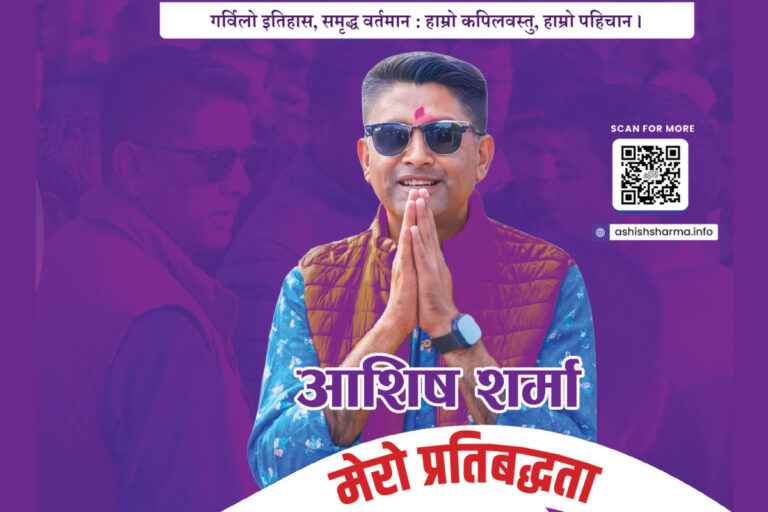 आगामी फागुन २१ गते हुने निर्वाचनमा कपिलवस्तु क्षेत्र नं. १ का स्वतन्त्र उम्मेद्वार आशिष शर्माले गर्विलो इतिहास, समृद्ध वर्तमान, हाम्रो कपिलवस्तु, हाम्रो पहिचान भन्ने मूल नारासहित प्रतिबद्धता पत्र सार्वजनिक गरेका छन् । एम.वि.ए. गरेका वित्तीय क्षेत्रका अनुभवी शर्माले कपिलवस्तुको समग्र विकासलाई मध्यनजर गर्दै आफ्नो प्रतिबद्धता पत्र सार्वजनिक गरेका हुन् ।
