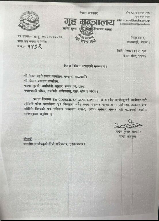 प्रमुख जिल्ला अधिकारी जनार्दन गौतमले मन्त्रालयको पत्र आएको, जिल्ला समन्वय प्रमुखलाई पठाएको बताए । थप जानकारी उतैबाट लिन पनि उनले अवगत गराए ।