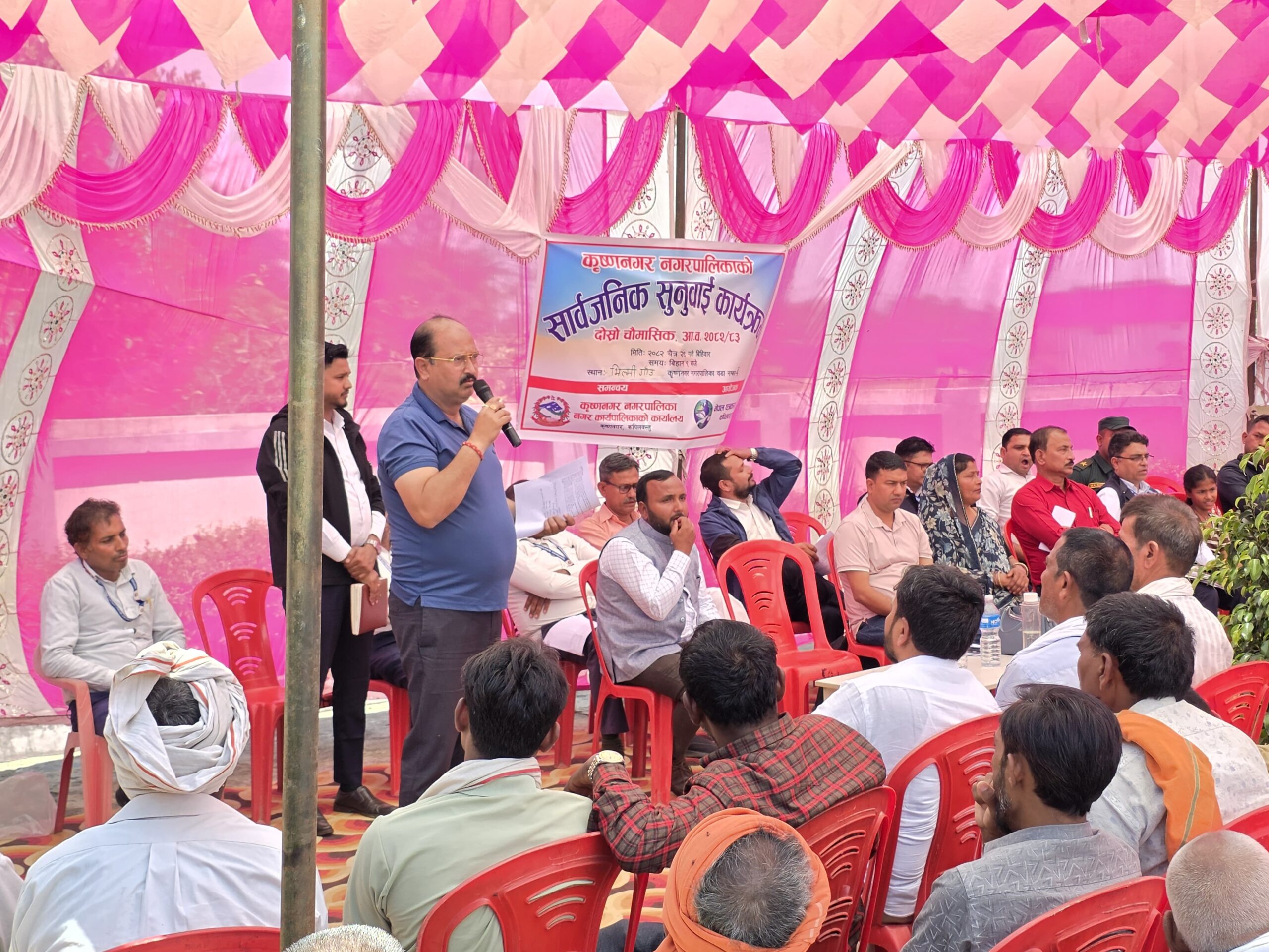 कृष्णनगर नगरपालिकाको दोस्रो चौमासिक सार्वजनिक सुनुवाइ कार्यक्रम सम्पन्न भएको छ। बिहीबार वडा नम्बर ६ को वडा कार्यालय भिल्मीमा आयोजित कार्यक्रममा सहभागीहरूले शिक्षा, स्वास्थ्य, सरसफाइ तथा सडक–नाला निर्माणसम्बन्धी विभिन्न समस्या उठाएका थिए।