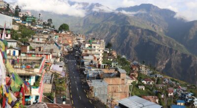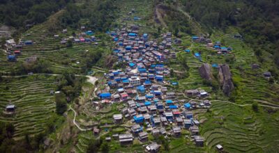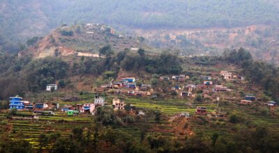 सुर्खेतको वीरेन्द्रनगर-१४ सिद्धपाइलाबाट देखिएको कुहिरोले ढाकेको वीरेन्द्रनगर बजार। तस्बिर- सुरेश आचार्य/रासस