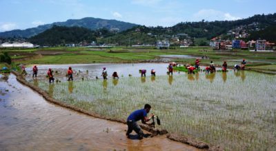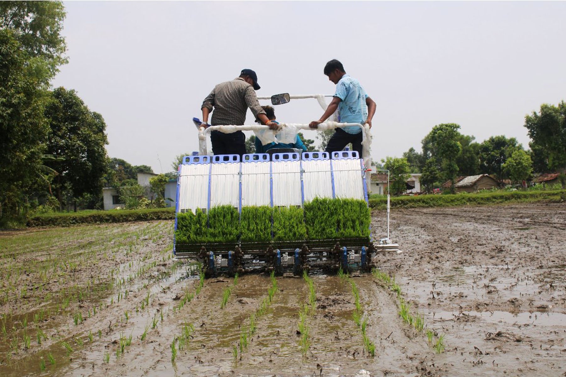 प्रधानमन्त्री कृषि आधुनिकीकरण परियोजना, कञ्चनपुरले पहिलो पटक भित्र्याएको धान रोप्ने मेसिन प्रयोग गरी धान रोपिँदै।तस्बिर- राजेन्द्रप्रसाद पनेरु, रासस