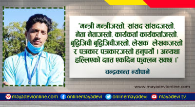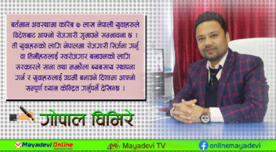 महेन्द्र प्रसाद लामिछाने । नेपाल कृषिप्रधान देश हो । नेपालको अर्थतन्त्र मुलतः कृषिमा निर्भर रहेको छ । सन् १९८० को दशकसम्म नेपालको ९० प्रतिशत भन्दा बढी जनसंख्या जीवन निर्बाहका लागि कृषिमा आश्रित थिए । नेपालको २०५ जमिन खेती योग्य थियो । अहिले नेपालको ६६५ जनसंख्या मात्र कृषिमा निर्भर छ र यो क्रम घट्दो छ ।…