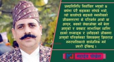 दीपक अनुरागी । पूर्व चर्चित पत्रकार तथा वर्तमान विवेकशिल साझा पार्टीका संयोजक रविन्द्र मिश्रले एक अन्तर्वार्ताका क्रममा भन्नुभएको थियो– ‘एकातिर देशको राजनीति सुध्रिएन भन्छौं, अर्को तिर आफ्ना छोराछोरीलाई डाक्टर, पाइलट, इन्जिनियर बनाउने, नभएर विदेश पठाउने योजना बनाउँछौं । अनि कसरी सुध्रिन्छ देशको राजनीति ? अब देशको राजनीति सुधार्नु छ । आफ्ना छोरा छोरीलाई पनि राजनीतिमा…