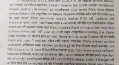 काठमाडौं । शिक्षा, विज्ञान तथा प्रविधिले स्वीकृति नलिई शैक्षिक मेला आयोजना नगर्न निर्देशन दिएको छ । मन्त्रालयको उच्च शिक्षा महाशाखा शैक्षिक परामर्श तथा प्रमाणीकरण शाखाले मन्त्रालयबाट स्वीकृति नलिई शैक्षिक मेला आयोजना नगर्न निर्देशन दिएको हो । केही संस्था, व्यवसायी र शैक्षिक परामर्शदाता संस्थाले स्वीकृति नलिई शैक्षिक मेला आयोजना गरेको गुनासाहरू आएको भन्दै मन्त्रालयले त्यसमा रोक…