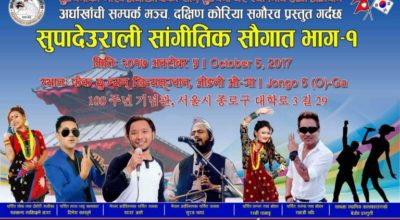 नेपाल आईडलका टप थ्री जनाको प्रस्तुतीले सीडनी संगै अस्ट्रेलियाका केही सहर संगीतमय हुने भएको छ । यस कार्यक्रममा नेपाल आइडल बुद्ध लामा रनर अप निशान भट्टराइ र सेकेन्ड रनरअप प्रताप दाश अस्ट्रेलिया जादैछन् । नेपाली टच अस्ट्रेलियाले नेपाल आईडलका टप ३ लाई लिएर अस्ट्रेलीया कार्यक्रम गर्न लागेको हो । सिडनीमा हुने कार्यक्रम ओलम्पीकपार्क स्पोर्ट्स…